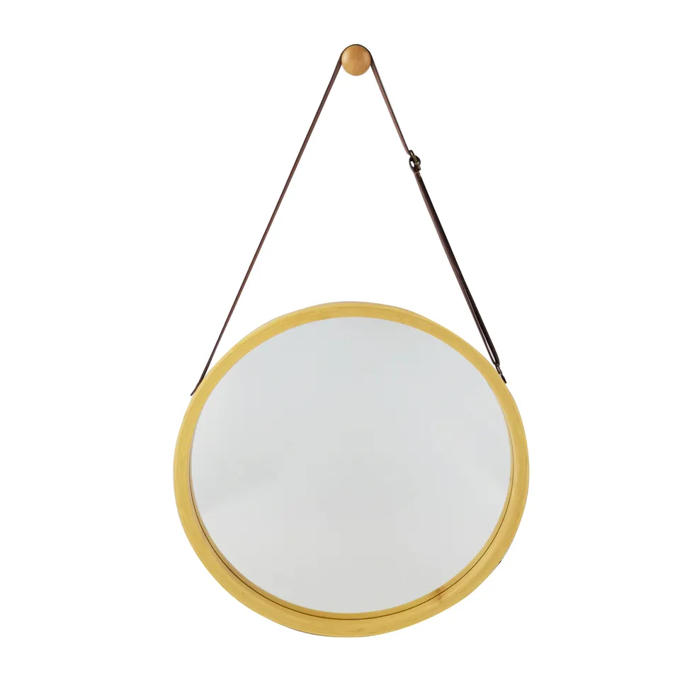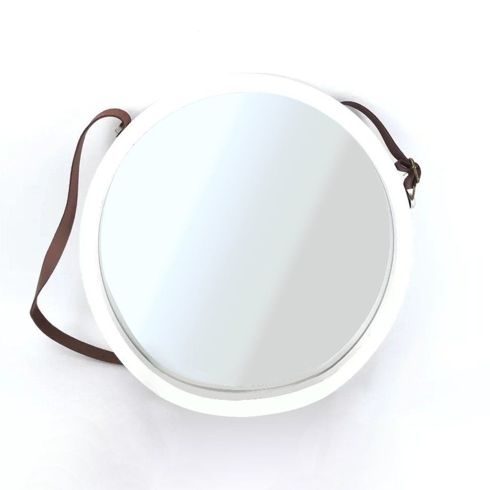 ديكور المنزل كبيرة مرآة حائطية مستديرة مرآة معلقة مع إطار خشبي و حزام