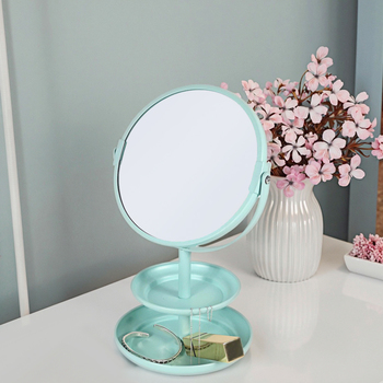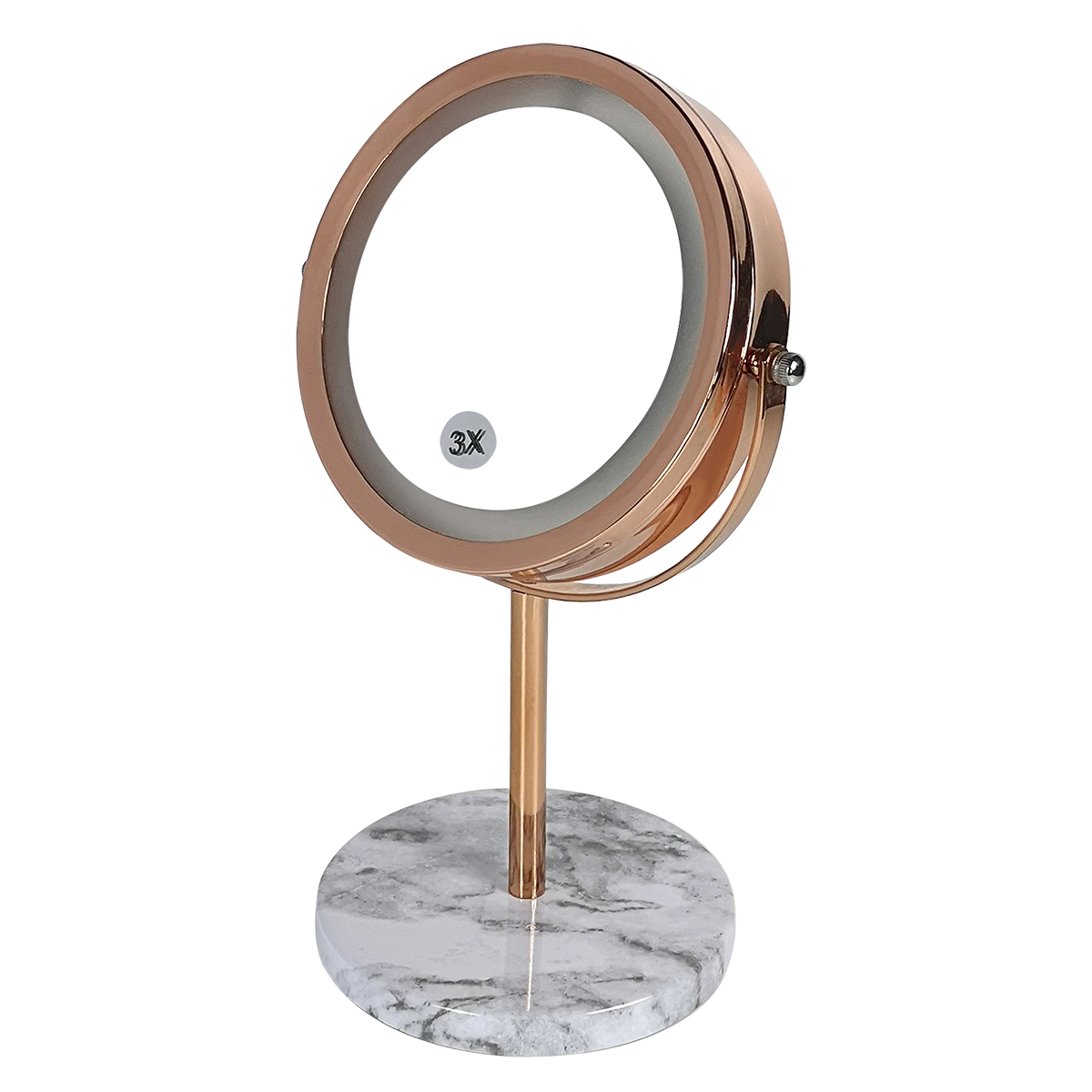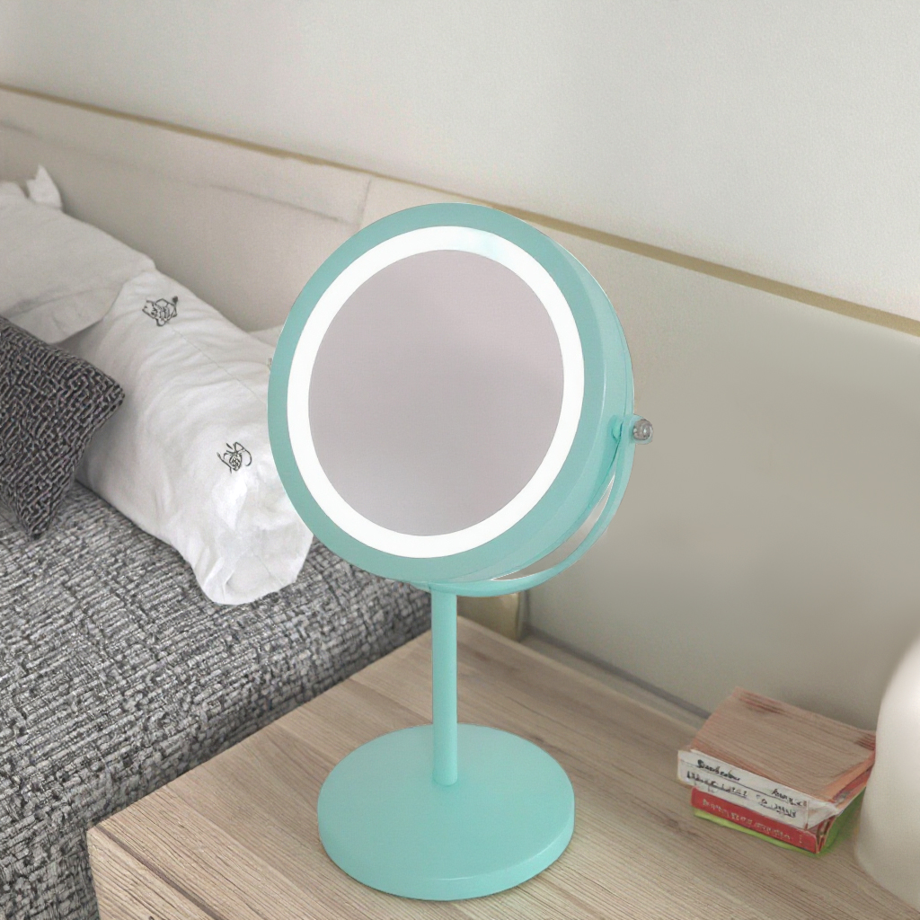 سطح المكتب مسحوق أزرق طلاء معدني بضوء LED مرآة مكبرة مزدوجة الجانبين