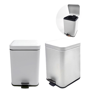 سلة مهملات منزلية معدنية بيضاء مربعة ، سلة مهملات ذكية للمطبخ